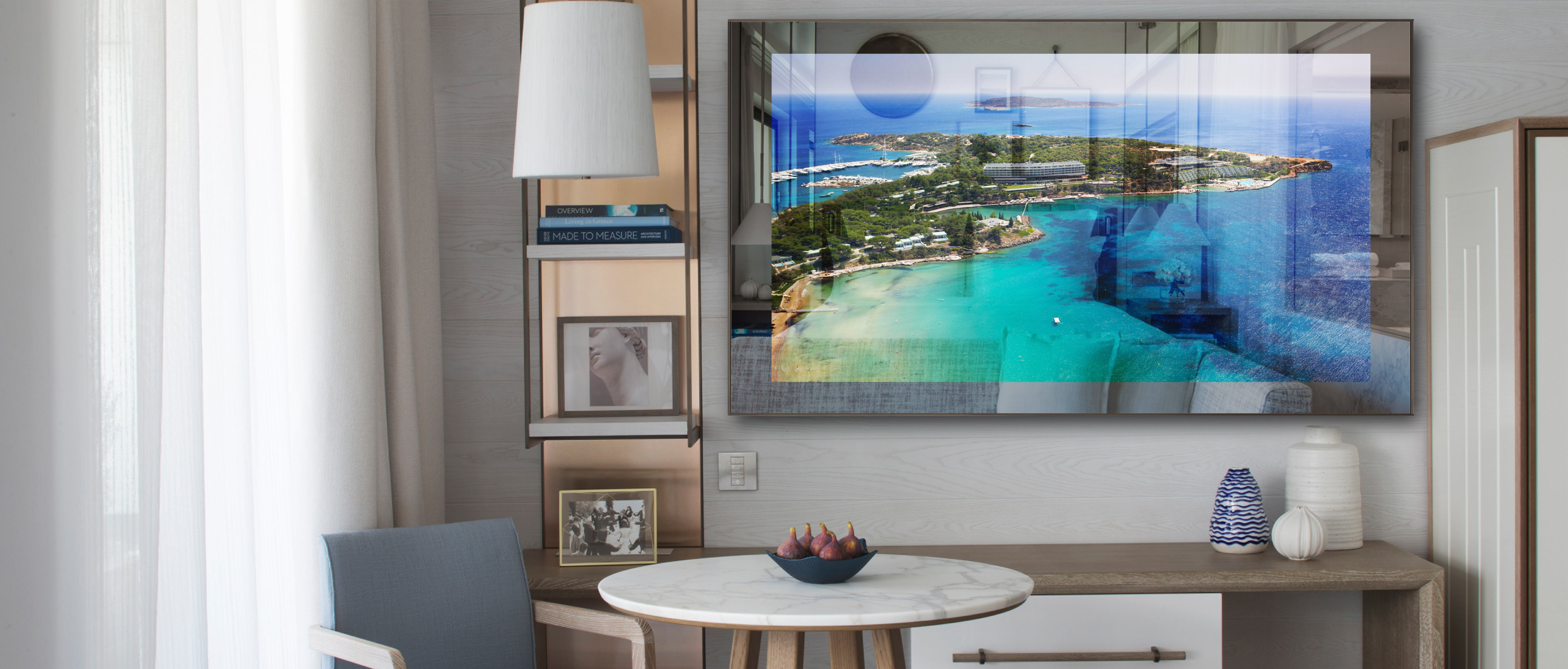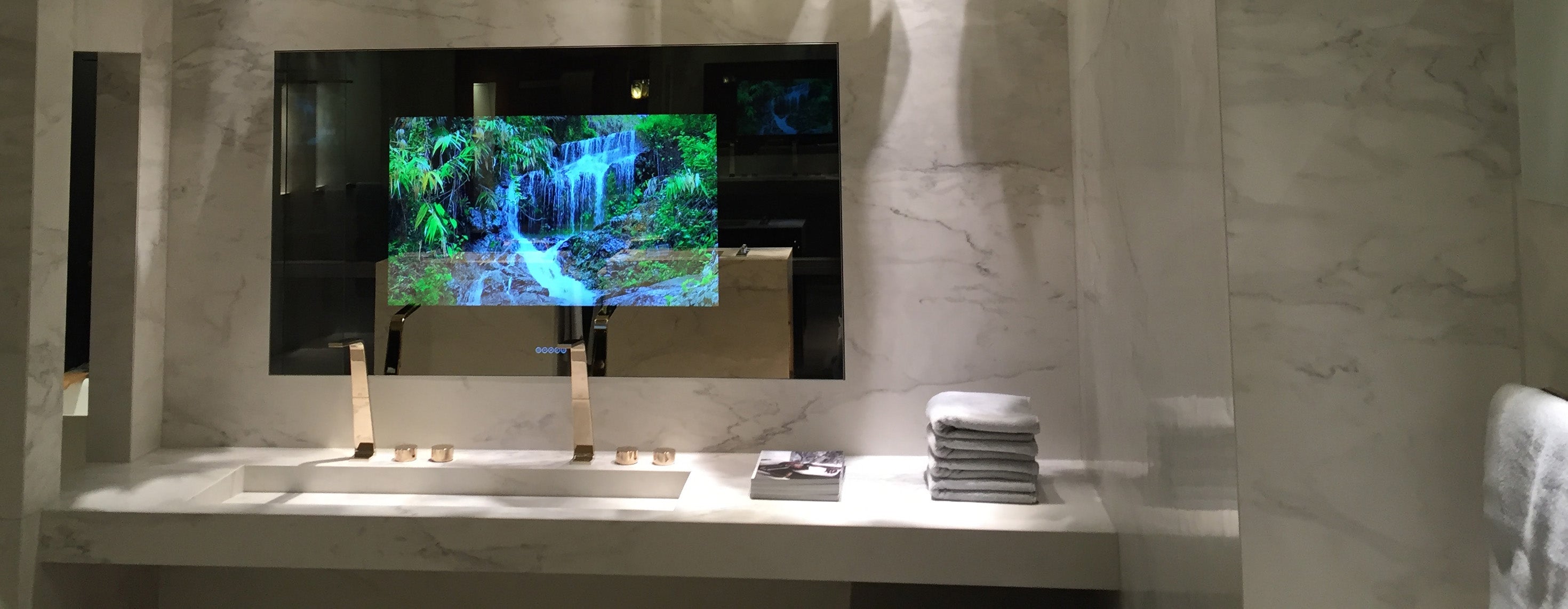 ad notam’s research and development team has flawlessly adapted and calibrated the LED/ LCD matrix for installation behind mirrors. From high brightness which allows the image to perfectly shine through the mirror, to the gapless display architecture system; from the low-voltage power system which allows even the largest Mirror TV with 86” to operate in damp environments without ventilation, to the slick “disappearance act” of our displays; these are just some of the advantages ad notam offers its clientele thanks to its comprehensive knowledge of Smart Mirrors and the various elements that construct them.