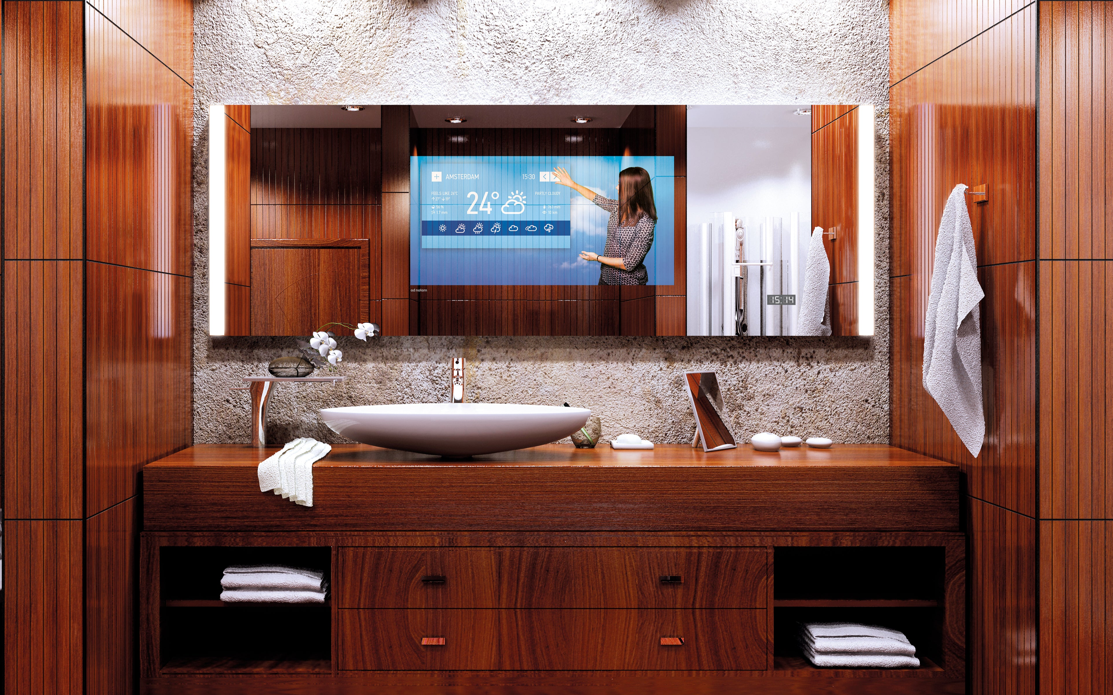 To do that, we combined a fully-fledged vanity mirror and an all new 4K’’ TV – in one device.